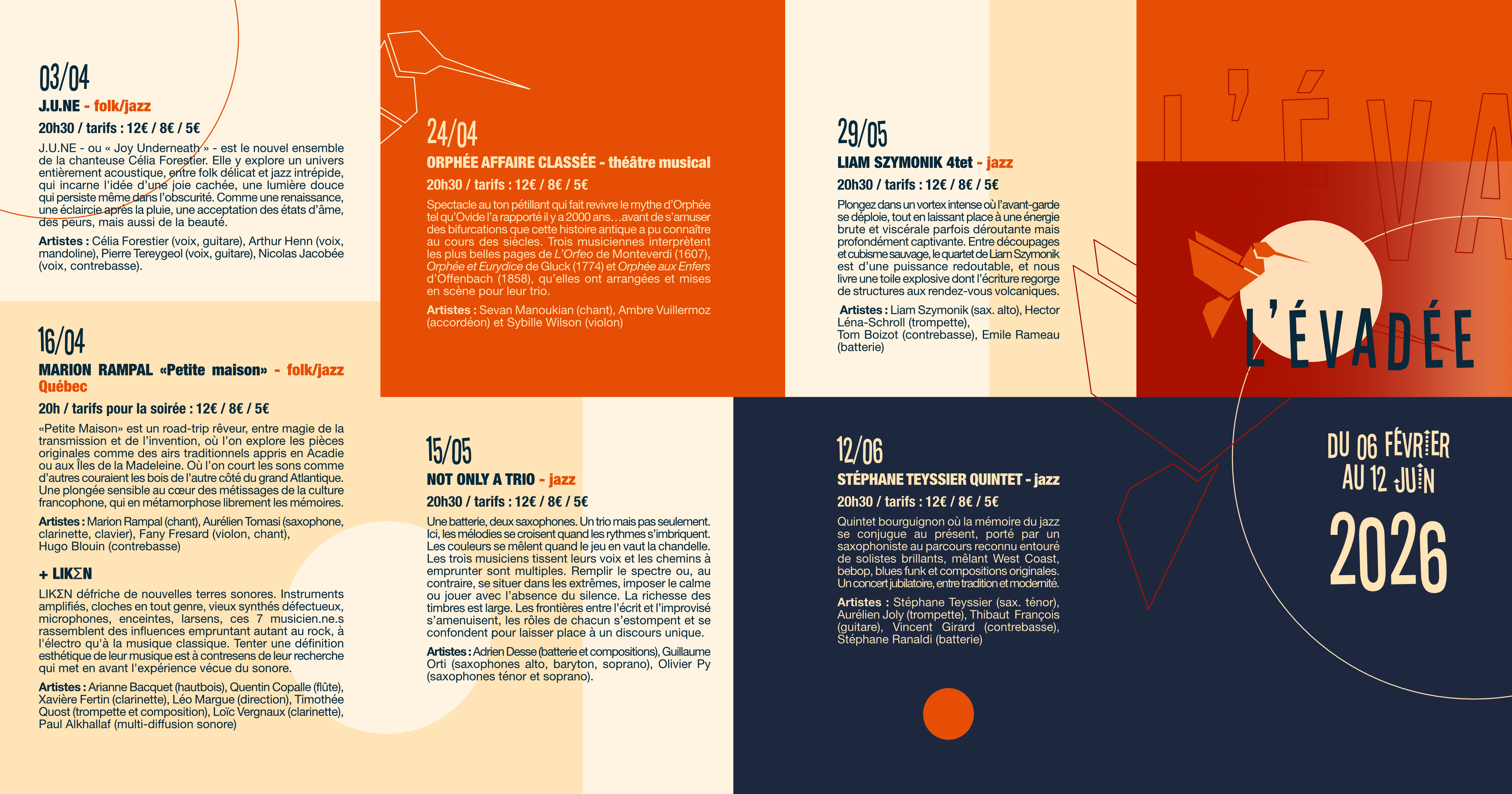 Suite aux merveilleux moments partagés lors du festival d'ouverture, voici ce qui vous attend à l'Évadée : vendredi 29 Novembre à 19H concert Afterwork MEMORY IN RHYTHM (jazz) Projet de Stephane Ranal…